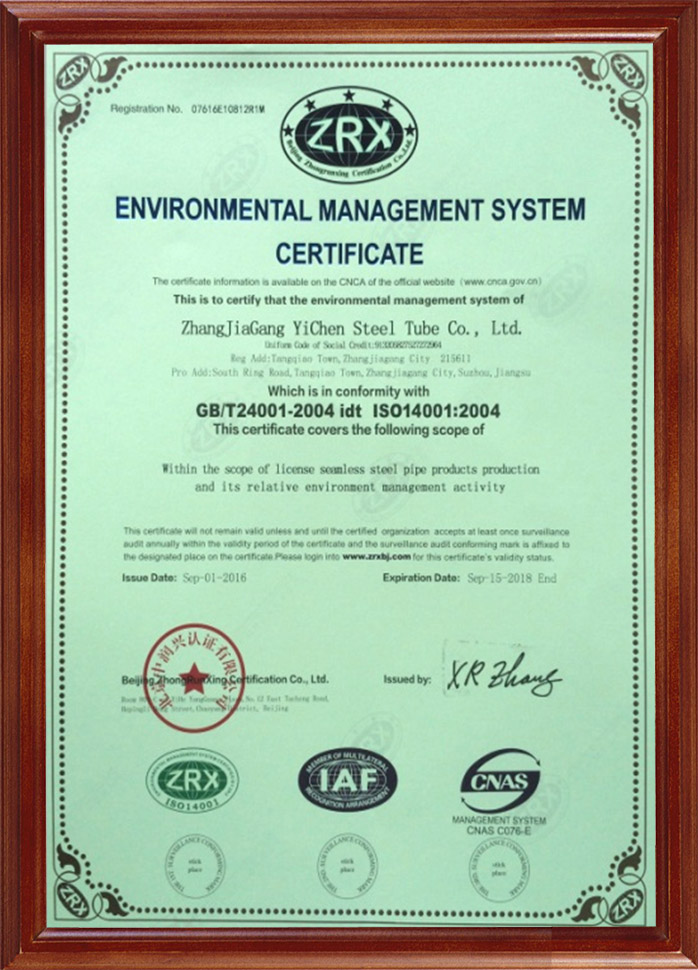 環境管理體系認證證書